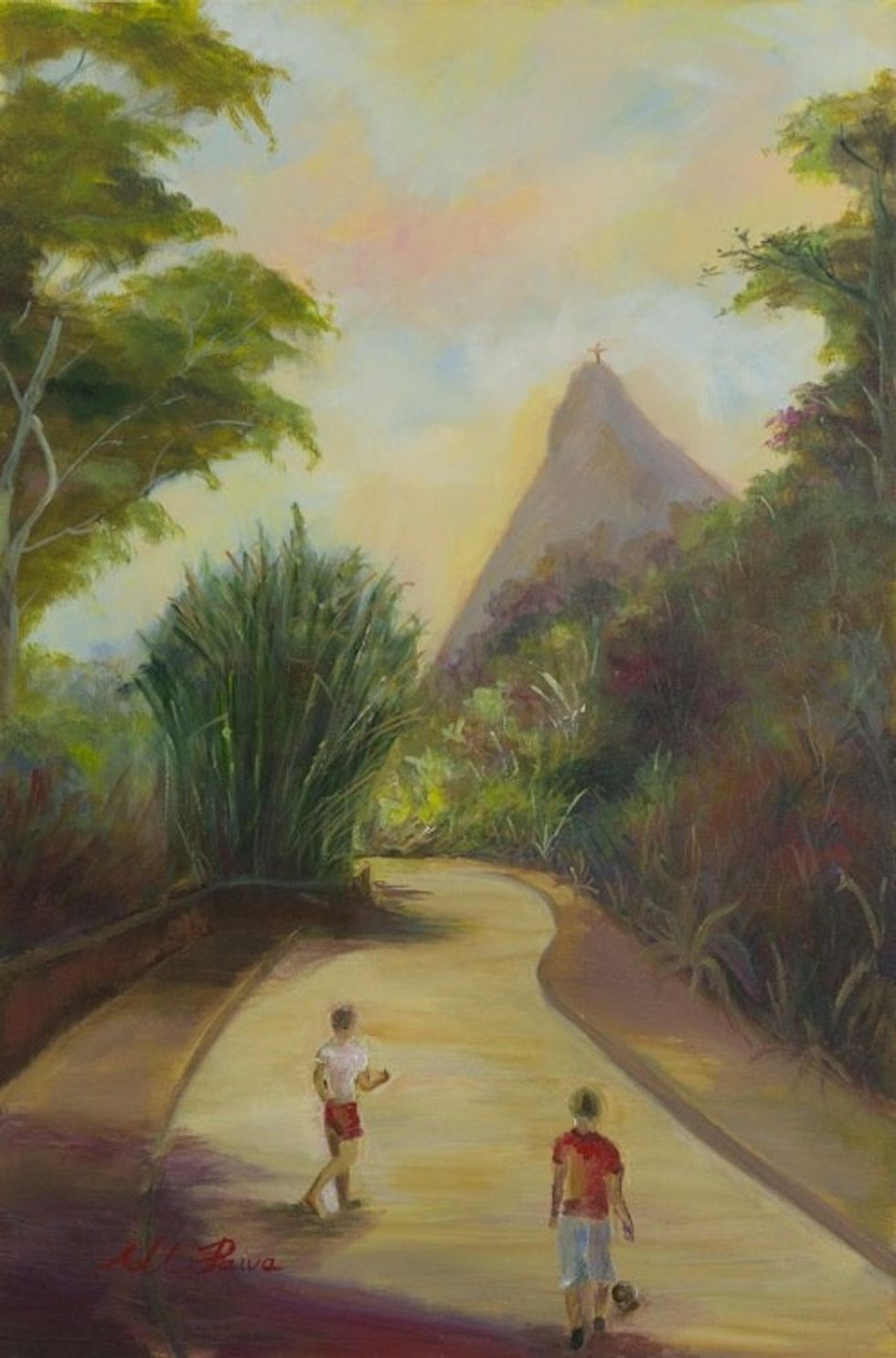 "A few years later I became interested in oil painting, encouraged by some of my students in porcelain painting. I now realize I find harmony and satisfaction in painting. My abstract work appears spontaneously, moved by the force of my spirit. My impressionist works are recreations based on photographs I have taken of the places I have visited in Brazil. One of the things I enjoy most in this life is to travel around my country and paint these recollections that allow me to relive happy moments.