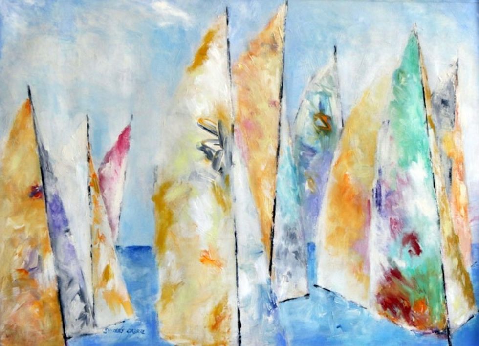 Signed Impressionist Painting of Sailboats from Brazil 'Sailing' Item ID: 2669891084