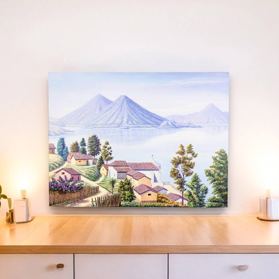 Signed Landscape Painting from Guatemala 'San Antonio Palopo' Item ID: 2671777576