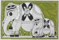 Signed Madhubani Painting of Mother and Baby Elephant 'Elephant Connection' Item ID: 2671793852