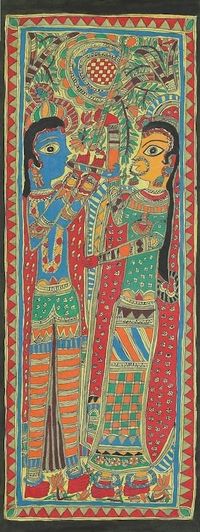 Signed Madhubani Painting of Radha and Krishna Together 'Endless Love of Radha and...' Item ID: 2671790719