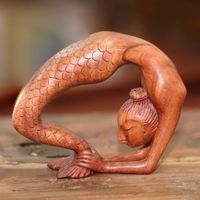 Signed Mermaid Wood Sculpture from Bali 'Setu Bandha Sirsasana Mermaid' Item ID: 2671473539