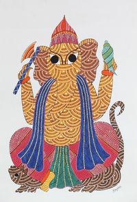 Signed Multicolored Gond Painting of Ganesha from India 'Majestic Ganesha' Item ID: 2671790449