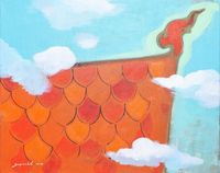 Signed Naif Painting of an Orange Roof from Thailand 'Thai Roof II' Item ID: 2671798914
