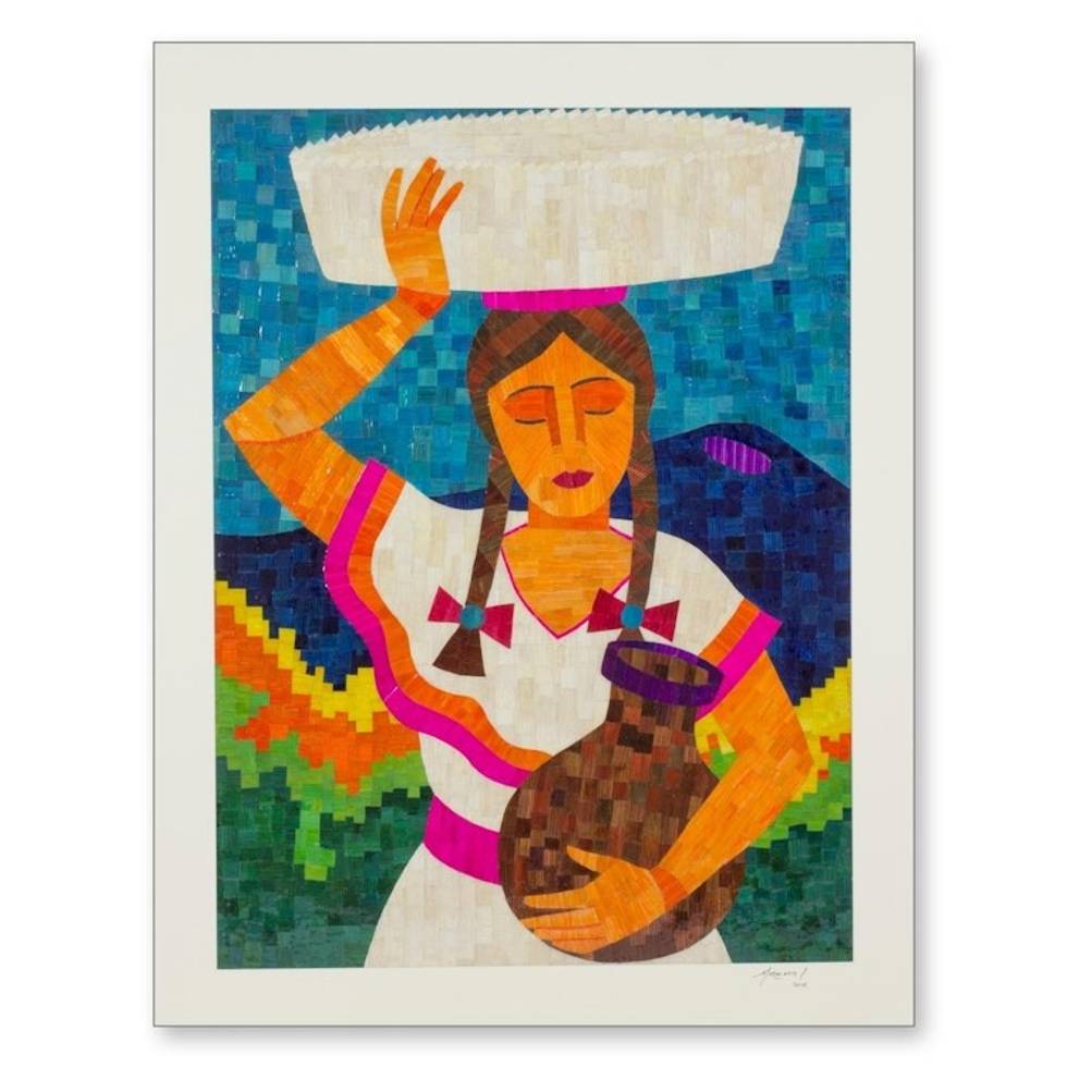 Signed Natural Fiber Collage Portrait of Nicaraguan Woman 'Nicaraguan Merchant Woman' Item ID: 2671779540