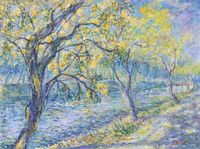 "One day, I met a painting professor. He suggested, 'If you love art but didn't study it, you can still paint!' These words encouraged me to start painting. My first used oil on canvas and was titled 'The Houseboat.'