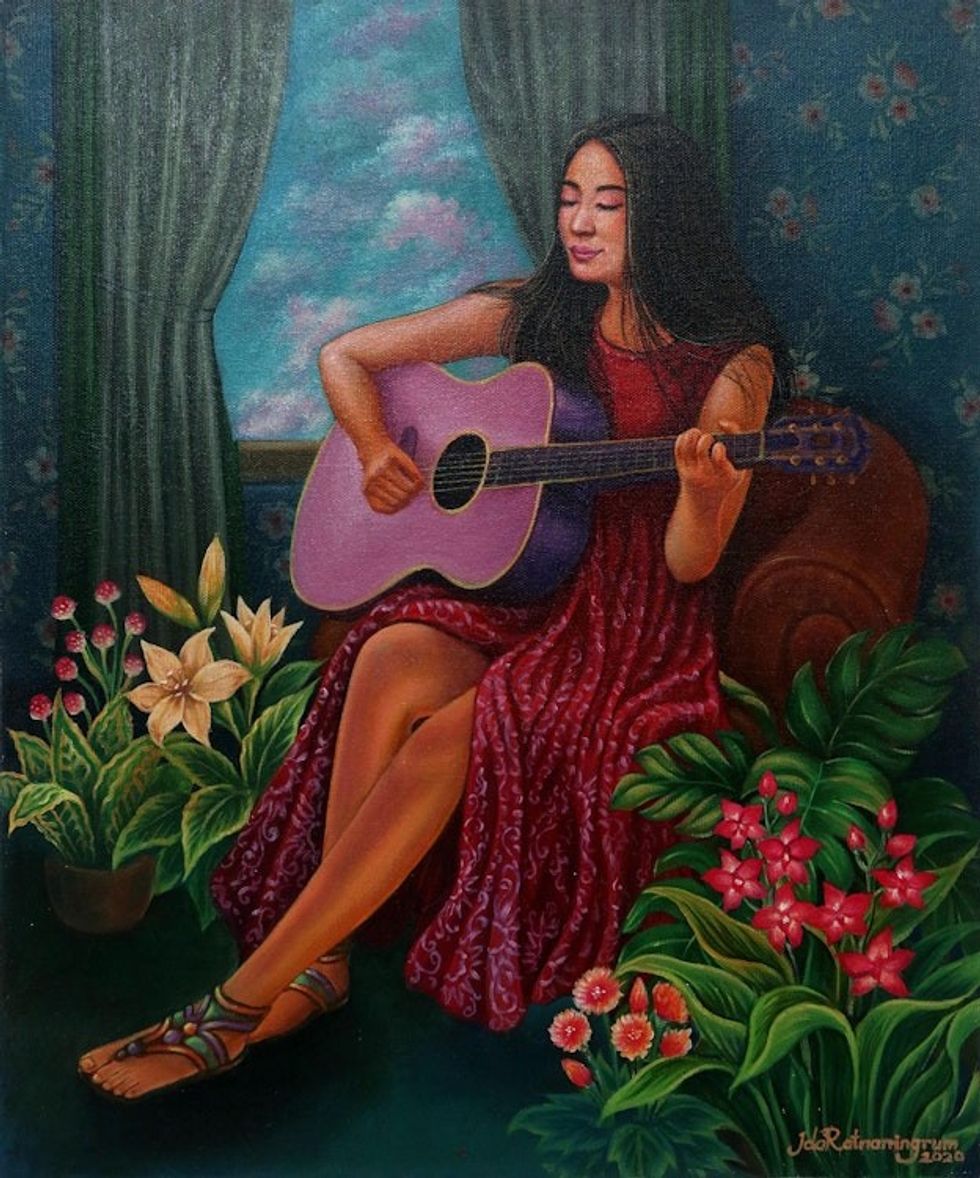Signed Original Javanese Painting of a Woman and Her Guitar 'Niluh's Guitar' Item ID: 2669889232