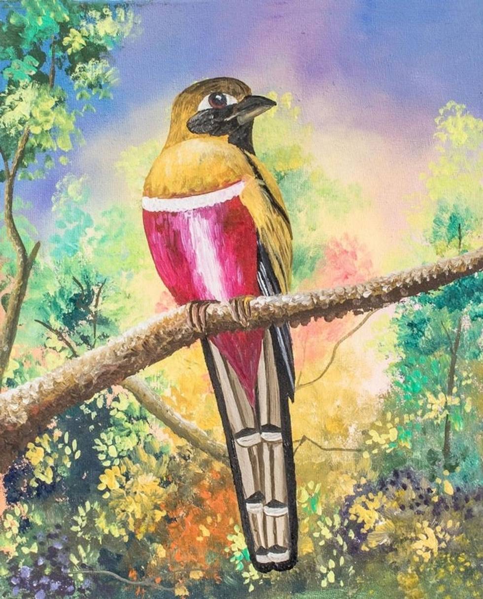 Signed Painting of a Red-Breasted Bird from Guatemala 'Natural Enchantment' Item ID: 2671776787