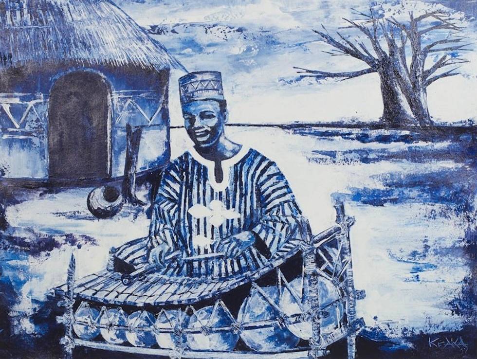 Signed Painting of a Xylophone Player from Ghana 'Xylophone Player' Item ID: 2669888587