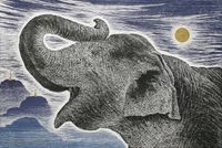 Signed Painting of an Elephant and Landscape from Thailand 'Happy Under the Moonlight' Item ID: 2669889083