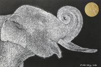 Signed Painting of an Elephant with a Golden Moon 'Pray to the Moon' Item ID: 2669889089
