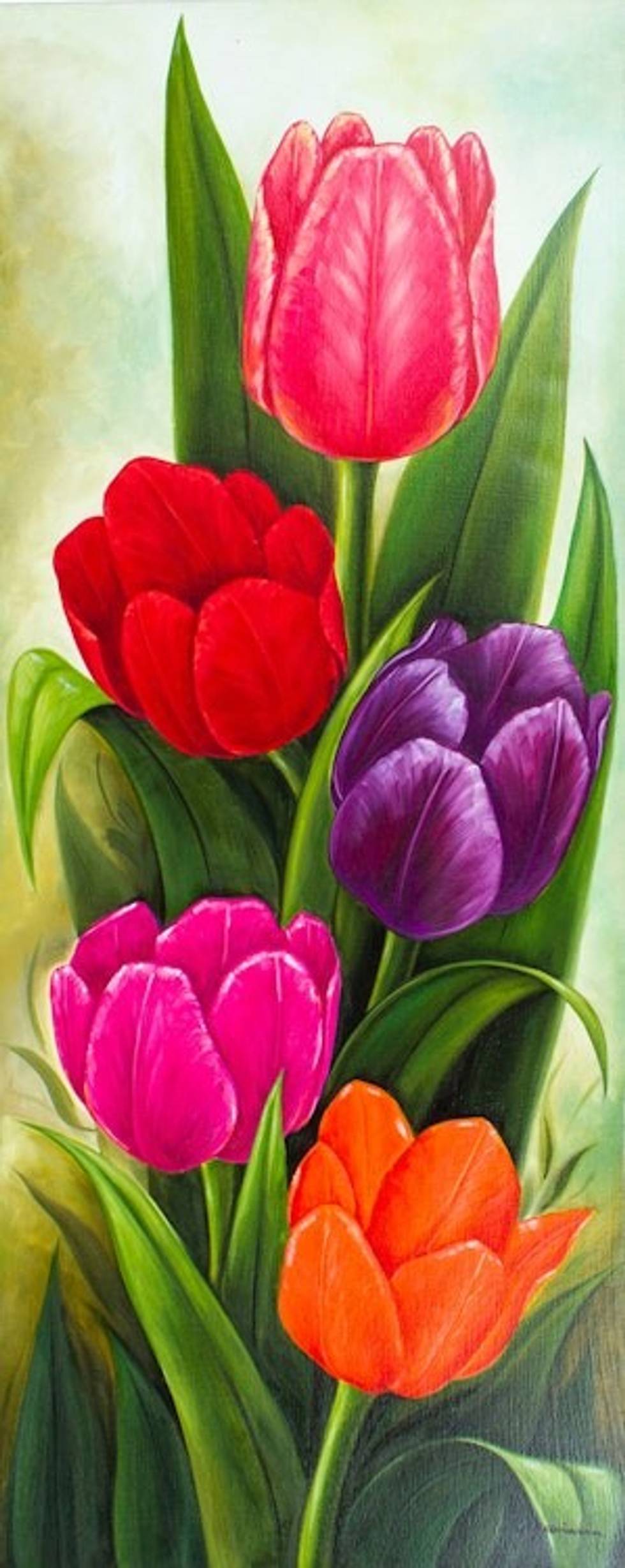 Signed Painting of Five Tulips from Mexico 'Five Tulips' Item ID: 2671639606