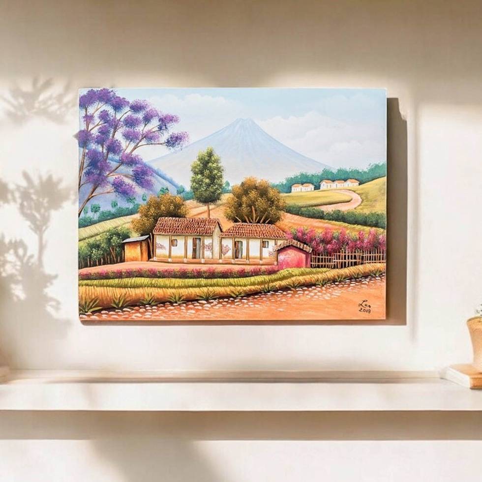 Signed Painting of Village Cottages from Guatemala 'Paths of My Village' Item ID: 2671776730