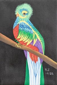 Signed Stretched Acrylic Impressionist Painting of Bird 'Quetzal' Item ID: 2671770842