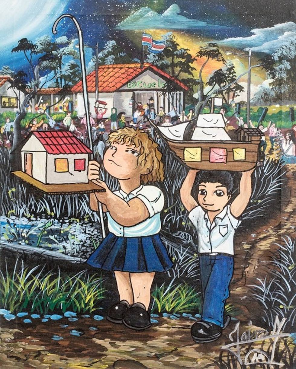 "Despite my congenital malformation, particularly in my limbs, my mom was always there to support me and enhance my technique. I took courses at the National Learning Institute and my first artwork was exhibited in the artist's house in Costa Rica. Since then, I have showcased my works in galleries, fairs, and hotels, always painting wherever I go.