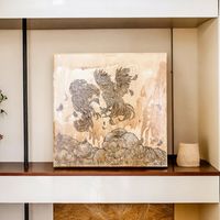 Signed Stretched Impressionist Ink and Coffee Wash Painting 'Cockfight' Item ID: 2671770080