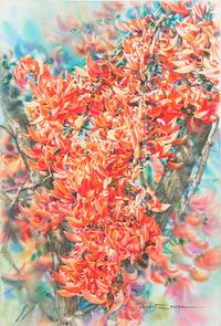 Signed Stretched Impressionist Watercolor Painting of Tree 'Bastard Teak' Item ID: 2671797741