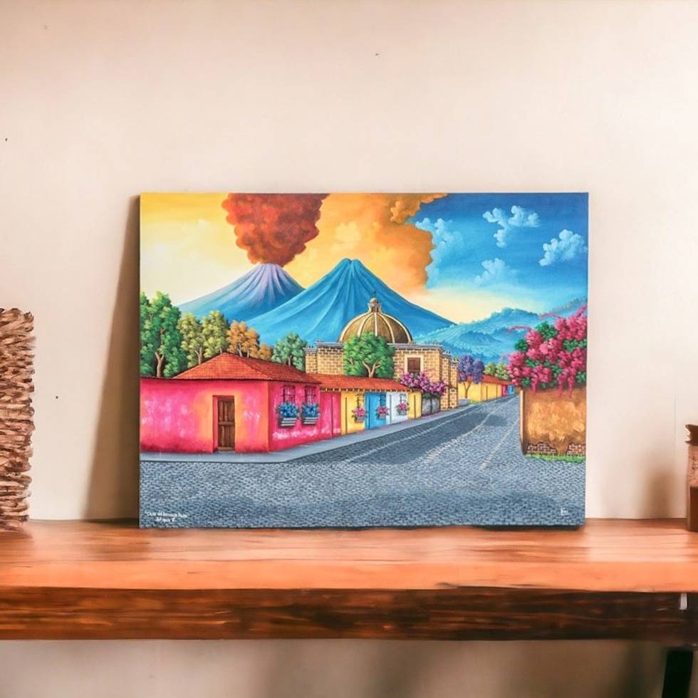 Signed Stretched Oil Painting of Guatemalan Street 'Hermano Pedro's House' Item ID: 2671772219