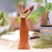 Signed Suar Wood Sculpture of Woman Hand-Carved in Bali 'Self Love' Item ID: 2671763347