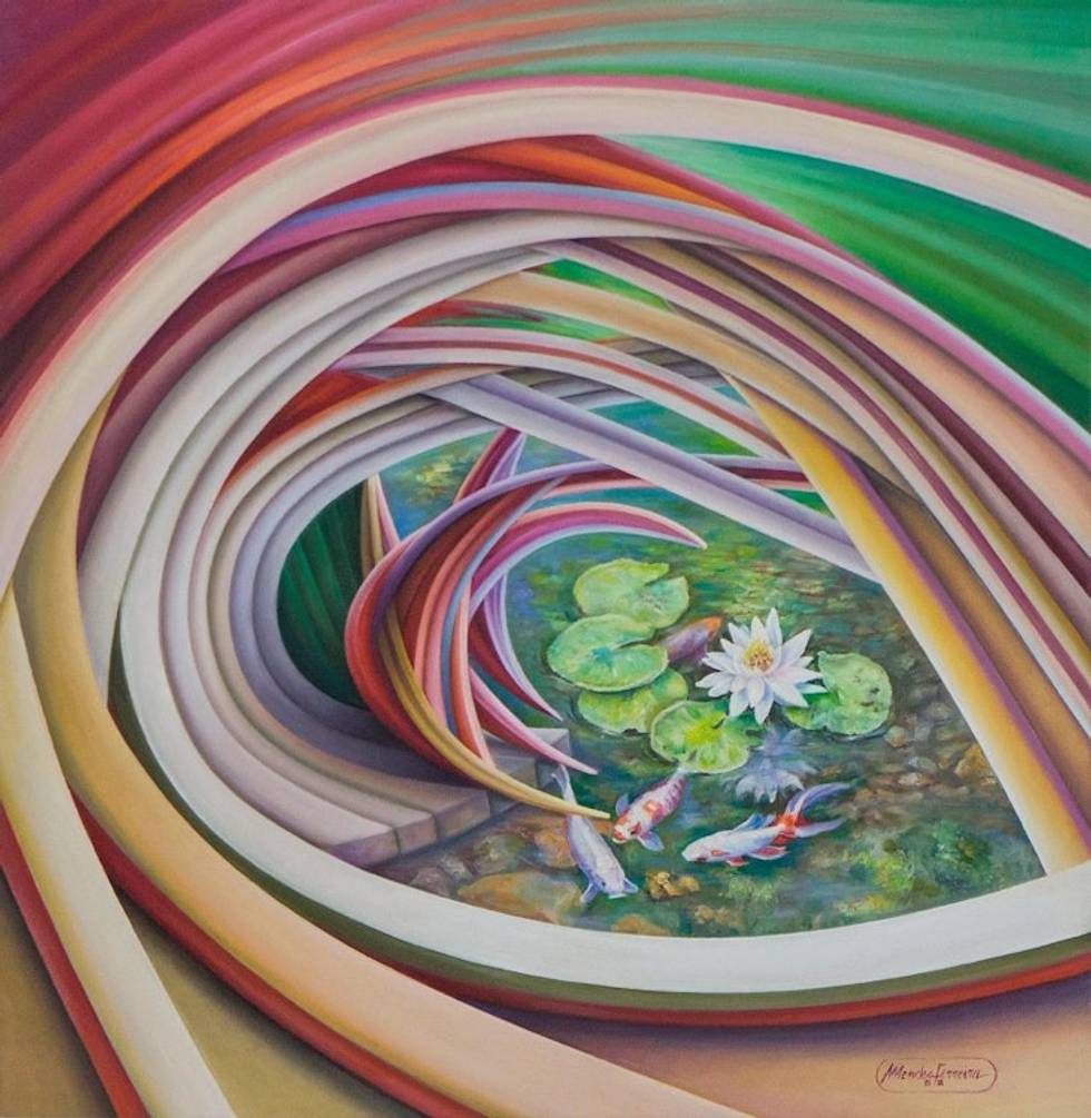 Signed Surrealist Painting of a Koi Pond from Brazil 'Fantastic World' Item ID: 2669903850