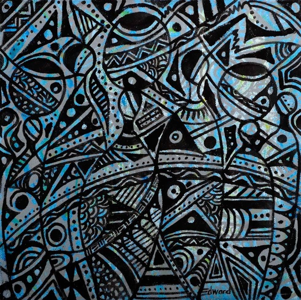 Signed Unstretched Abstract Blue and Black Acrylic Painting 'Cultural Unity' Item ID: 2669887409