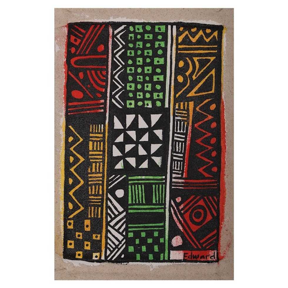 "Born to a Ghanaian mother and a Nigerian father on November 16, 1967, I began drawing at a very tender age, whatever I set my eyes on. What I fancied most, however, was copying pictures of historical figures like Sir Charles MacLean, Guggisberg, and Macarthy, which I found in the history book. Fine Arts was one of the subjects I sat for at the Ordinary Level (middle school) in 1979. Between 1988 and 1990, I sat for the Ordinary National Diploma (OND) and for the Higher National Diploma (HND) in 1995 at the Polytechnic University. I specialized in painting with textile as a subsidiary."
