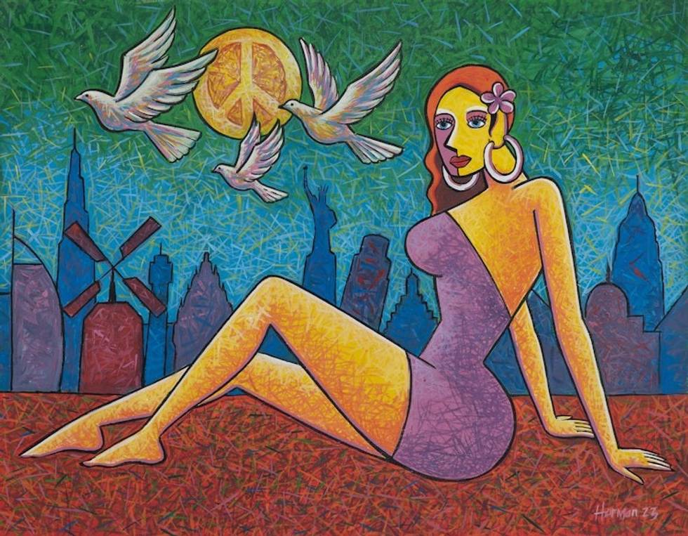 Signed Unstretched Expressionist Acrylic Painting from Bali 'The Peace is Beautiful' Item ID: 2669889204