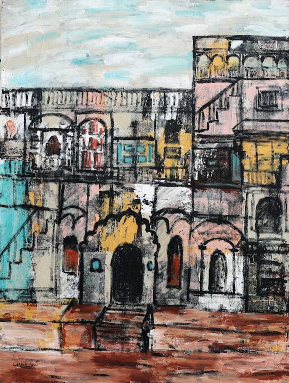 Signed Unstretched Expressionist Acrylic Painting of Dehli 'Dilli Haveli' Item ID: 2669890114