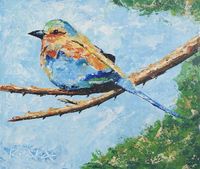Signed Unstretched Impressionist Acrylic Bird Painting 'Lilae-Breasted Roller' Item ID: 2671036216