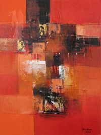 Signed Unstretched Red and Black Abstract Acrylic Painting 'Red Energy' Item ID: 2669889507