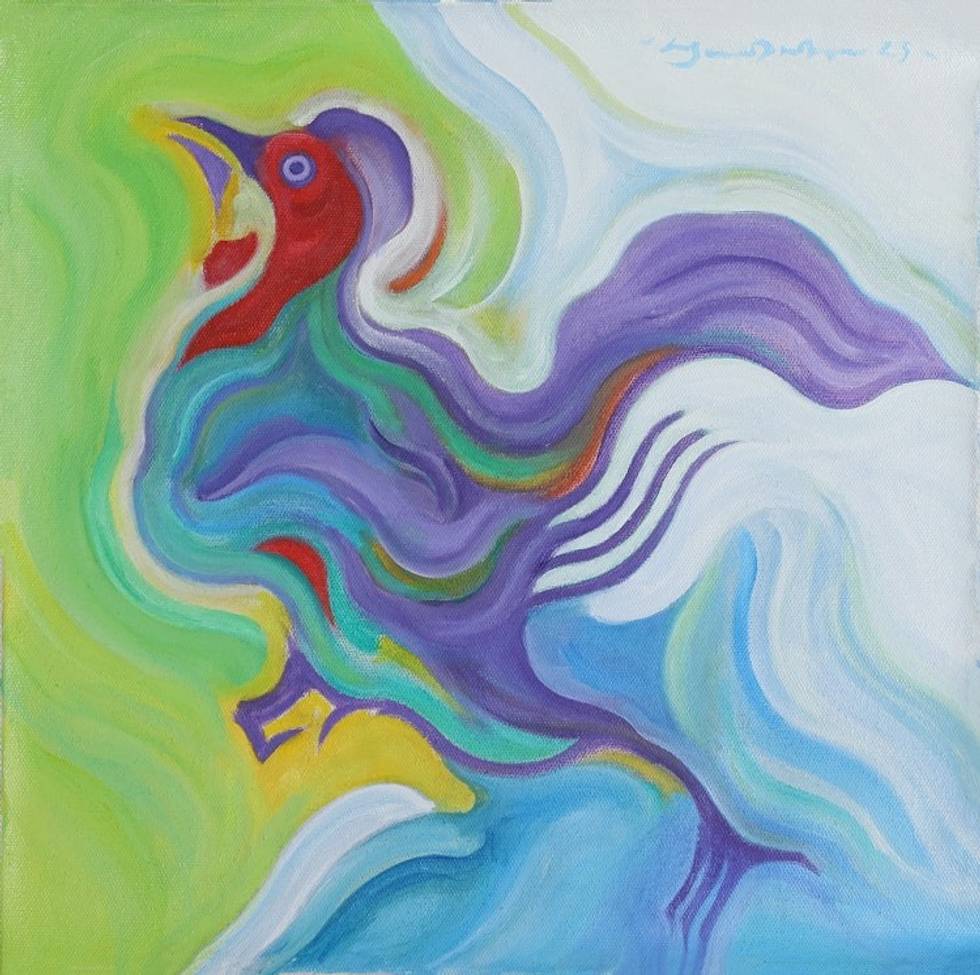Signed Unstretched Vibrant Acrylic Rooster Painting 'The Rooster' Item ID: 2669889235
