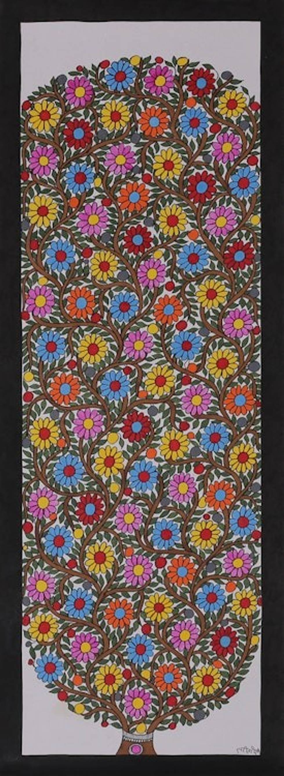 Signed Vegetable Dye Madhubani Painting of Floral Tree 'Infinite Blossoms' Item ID: 2671786740
