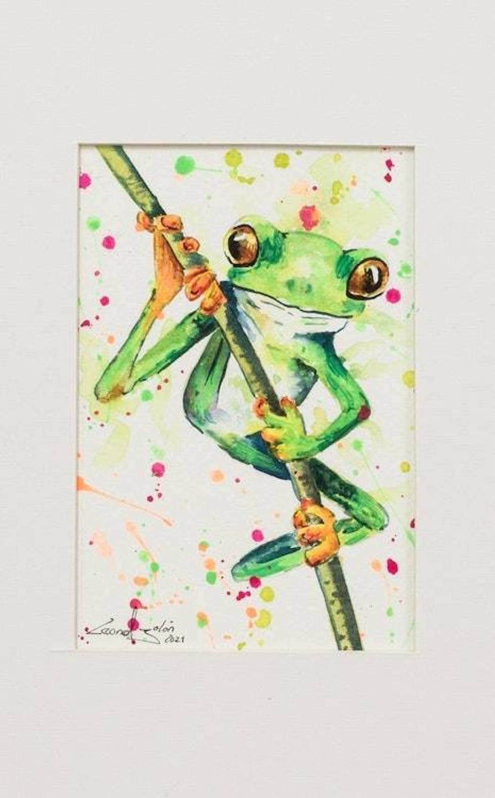 Signed Watercolor Frog Painting 'In the Branches' Item ID: 2676659389