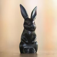 Signed Wood Bunny Sculpture in Black from Bali 'Cute Bunny in Black' Item ID: 2671736440