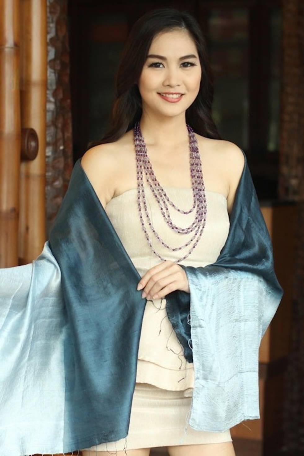 Silk Shawl from Thailand 'Shimmering Ocean' Item ID: 2669894219