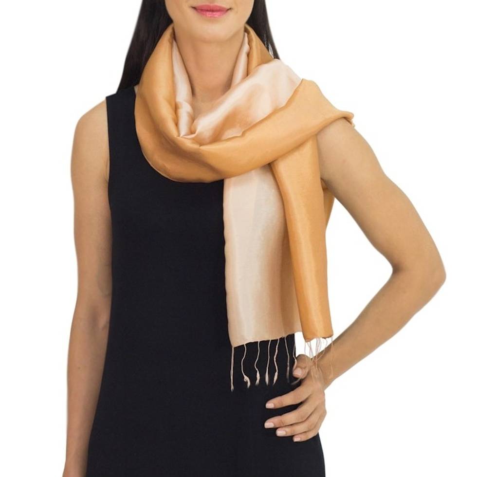 Silky Rayon Blend Scarf for Women Crafted in Thailand 'Caramel Shimmer' Item ID: 2671802358