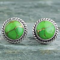 Silver 925 and Green Composite Turquoise Stud Earrings 'Verdant Radiance' Item ID: 2669943517