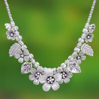 Silver 950 Flower Motif Pendant Necklace from Thailand 'Nature's Miracle' Item ID: 2669926417