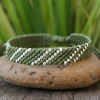 Silver accent wristband bracelet 'Diagonal Green' Item ID: 2671802735