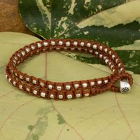 Silver Accents Wrap Bracelet Thai Hill Tribe Jewelry 'Floral Moon in Brown' Item ID: 2671802599