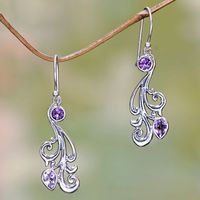 Silver and Amethyst Dangle Earrings from Bali 'Vineyard Grapes' Item ID: 2671701443