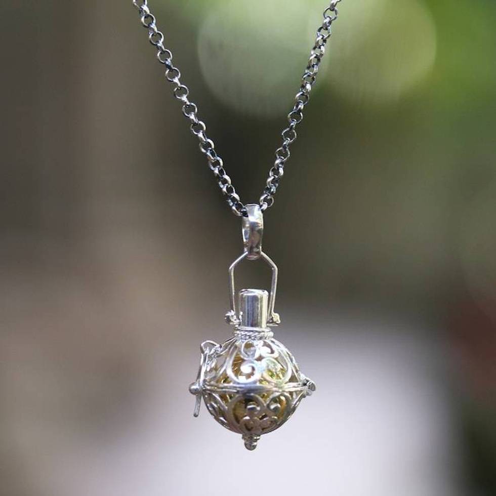 Silver and Brass Harmony Ball Necklace with Garnet 'Light of My Life' Item ID: 2676663114