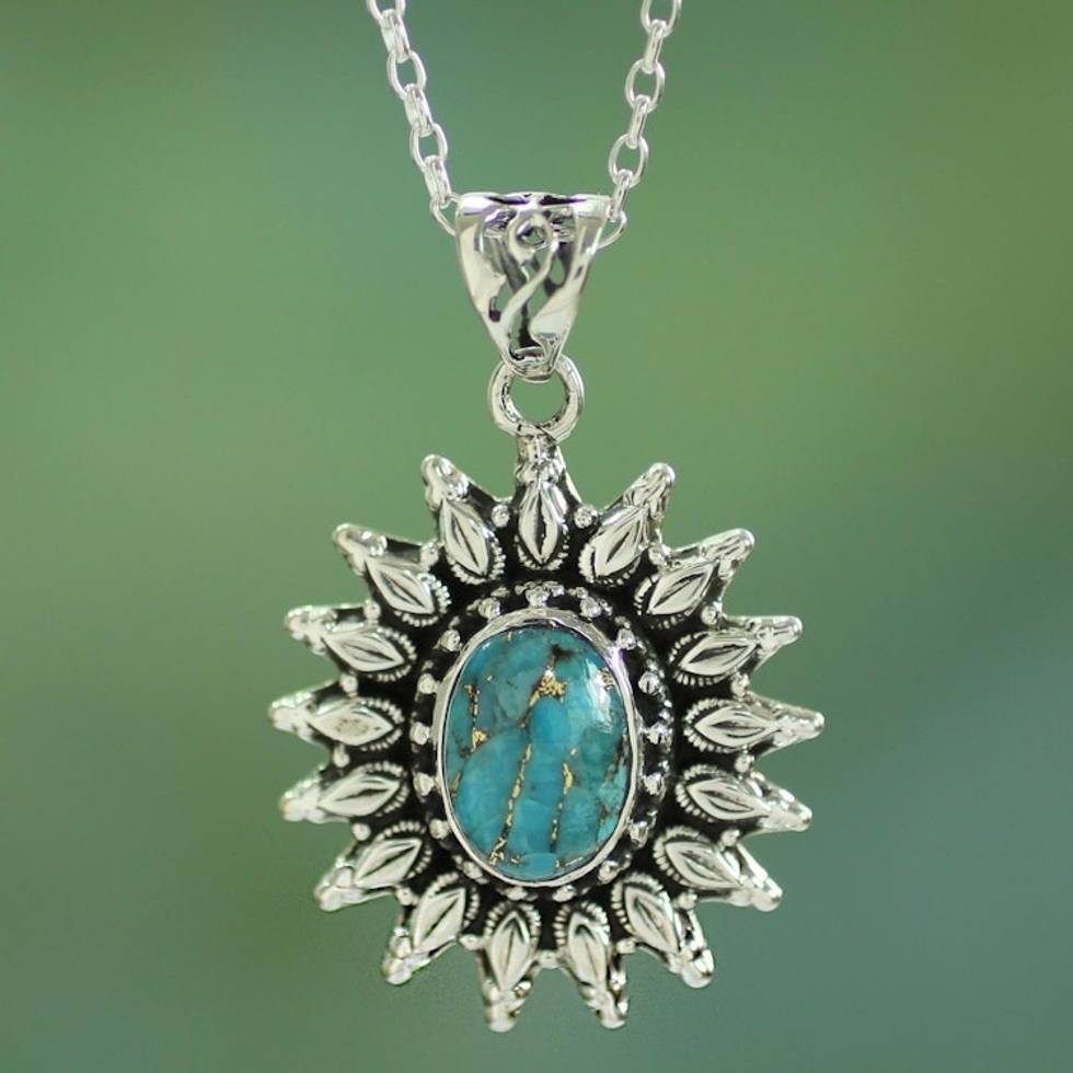 Silver and Composite Turquoise Artisan Crafted Necklace 'Eternal Radiance' Item ID: 2671793229