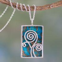 Silver and Composite Turquoise Necklace India Modern Jewelry 'Happy Tree' Item ID: 2671793636