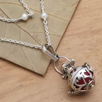 Silver and Cultured Pearl Harmony Ball Necklace with Garnet 'Love's Purity' Item ID: 2671744976