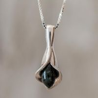 Silver and Dark Green Jade Floral Necklace from Guatemala 'Dark Green Calla Lily' Item ID: 2671626477
