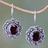 Silver and Garnet Sunflower Drop Earrings from Bali 'Singaraja Sunflower Red' Item ID: 2669923346