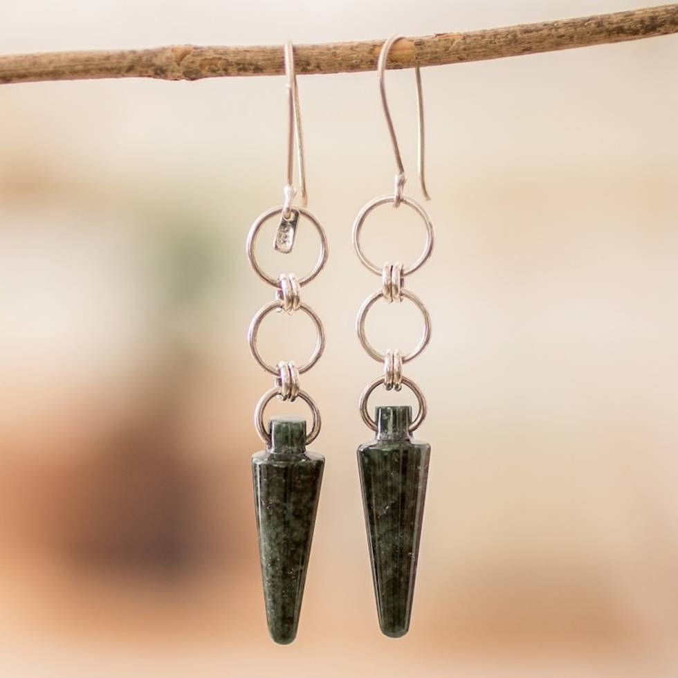 Silver and Green Jade Dangle Earrings with Pendulum Hoops 'Pretty Pendulum' Item ID: 2671769731