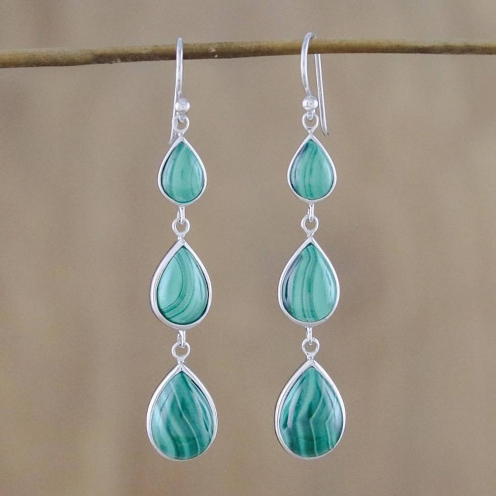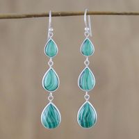Silver and Malachite Dangle Earrings from Thailand 'Salt Water Drops' Item ID: 2669925687