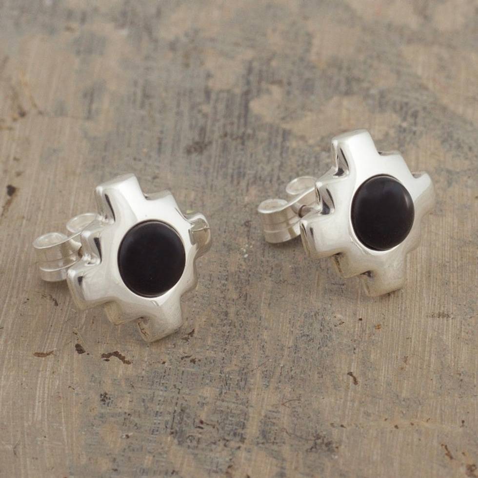 Silver and Obsidian Inca Chakana Stud Earrings 'Inca Constellation' Item ID: 2671820059